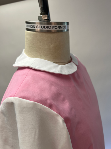 For our final project, student groups were tasked with designing a garment for a specific target market. Our group was given childrenswear and tasked with creating an XS-XL size run of our garment. We chose to create a girls dress with a peter pan color and button closure in the back. The base pattern was created through Gerber CAD pattern making software and graded for the size run. We continued to use Gerber to create markers for the bodice, sleeves, collar, and collar facings. Our markers were sent to the Lectra fabric cutter to cut all of the pattern pieces. We utilized the Lectra cutter to maximize our fabric conservation. Finally, each group member constructed a different size of garment. All components of the project were then combined into a final tech pack which was then presented.